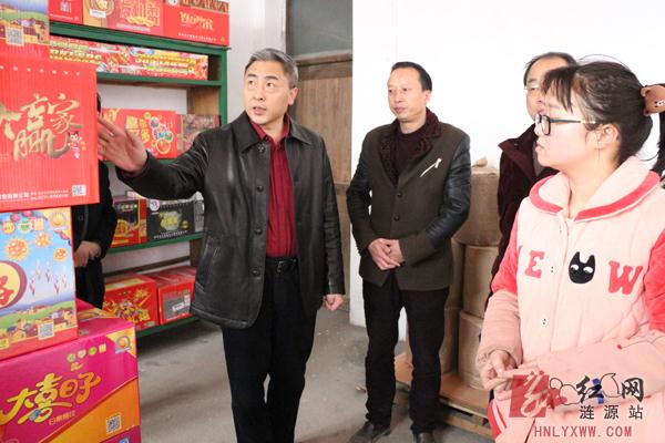 (涟源市委副书记、市长刘杰(左一)在永发烟花爆竹直销点检查安全生产)