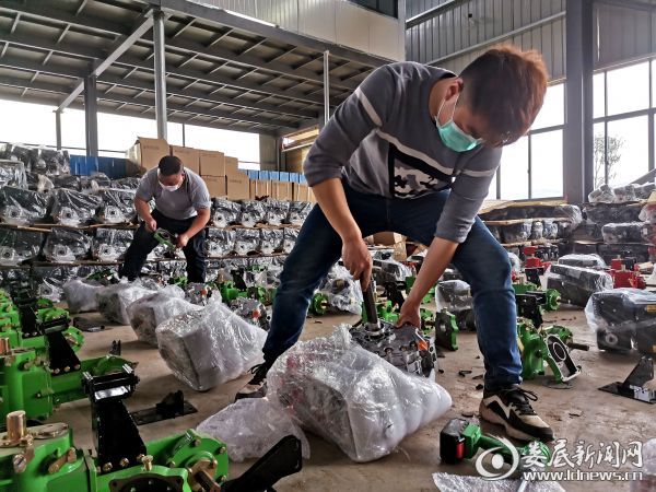 (工人们正在装配微耕机)