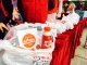 爱心物资被装进塑料袋中,方便返乡人员携带