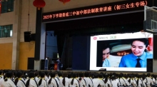 上午,师生们统一着校服,佩戴团徽徽章或红领巾,在学校集合整队后乘车前往烈士陵园。队伍抵达陵园,全体师生肃立于烈士纪念碑前。