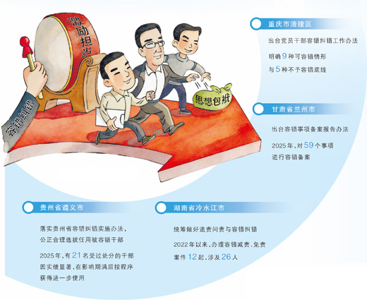 厘清“可容”边界,设置“不容”底线,有原则,也有细则。涪陵区出台党员干部容错纠错工作办法,明确改革先行先试、处置突发事件、执行急难险重任务等情况下的9种可容错情形与5种不予容错底线,为实干者撑腰鼓劲,也对失职失责、违纪违法者甄别查处。
