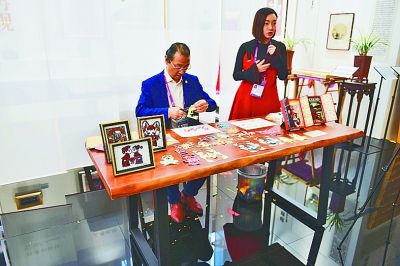 临近媒体专属工作区,“生活中的上海”非物质文化遗产展示区也足够“吸睛”。有着近百年历史的上海剪纸,流光溢彩的海派旗袍,融书、画、诗、文、印于一体的嘉定竹刻,曾伴随几代人成长的“小人书”……深具海派特色的15个非遗项目在这里集体亮相。