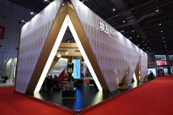 场馆看点:埃及是本次进博会12个主宾国之一。无处不在的三角造型、富丽堂皇的金色、极具特色的雕像……尼罗河畔金字塔的元素随处可见。