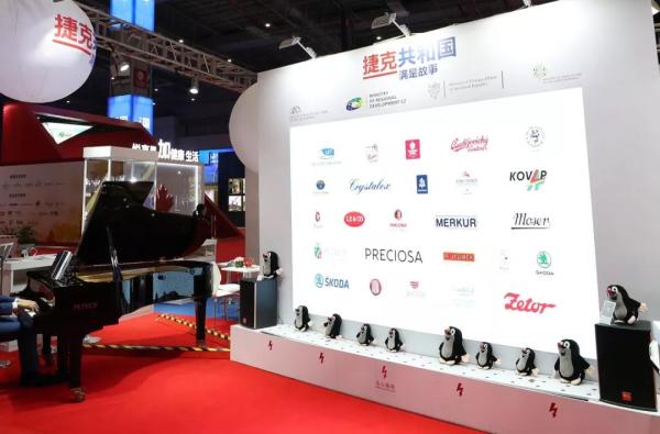 在捷克馆,泽曼总统用捷克产钢琴即兴演奏一曲,并邀请习近平品尝捷克啤酒。